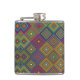 Colorful hip flask with a geometric diamond pattern. The vibrant design includes shades of pink, blue, green, and yellow, creating a lively, modern look.
