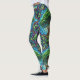 Colorful leggings featuring a vibrant, nature-inspired design with intricate leafy patterns and tree motifs. Bright blues, greens, and purples create an energetic vibe.