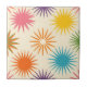 Ignite retro joy with this vibrant mid-century modern starburst pattern. Bold, radiating bursts in sunny orange, golden yellow, teal blue, deep purple, magenta pink, and lush green explode across a soft cream background, featuring textured, hand-printed details for authentic vintage charm. The playful yet sophisticated arrangement captures the optimistic energy of the 1950s and 60s, bringing dynamic color and atomic-era flair.