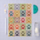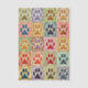 A colorful quilt inspired design featuring twenty paw prints arranged in a patchwork grid. Each square is filled with intricate leafy or dotted background patterns giving it a lively handmade feel. The design mimics the look of appliqué stitching and fabric texture, making it a perfect choice for animal lovers and crafters alike. The paw shapes could represent dogs, cats, or other beloved pets, bringing a touch of warmth and personality to any project. Artwork similar to a stitched fabric quilt with decorative embroidery detail……COLOR COMBINATIONS