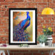 Dieser Druck zeichnet sich durch einen schönen Pfau mit bunten Federn in den Farbtönen Blau, Grün, Rot, Orange und Gelb auf einem freien Hintergrund aus.