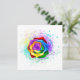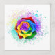 Large, blooming rose with rainbow petals on white background, painted over with splashes of colorful, bright paint. 3d