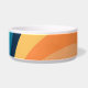 Abstract illustration of colorful retro style circles in yellow, blue, orange and turquoise colors on navy blue background