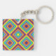Take color on the go with this stylish keychain showcasing a psychedelic rainbow geometric design. The retro-inspired pattern adds a fun, artistic touch to your keys, bags, or everyday accessories.