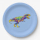 Colorful Running T Rex Psychedelic Dinosaur Art Pappteller