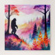 Sasquatch Stehend auf einem Hügel mit Blick auf den Wald farbenfrohe Aquarell AI Kunstfertige von minx267