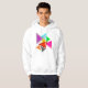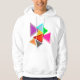 Size 2X-Large, Men, White, Adult Pullover Hoodie, With a Drawing /Design , of Colorful Triangles, on the Front of it, the Back, of the Hoodie, is Blank.= (Drawing / Design , by P.J.M.)= With the White Background removed.