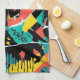 Colorful urban graffiti patchwork pattern kitchen towel featuring bold abstract blocks, expressive brush strokes, scribbles, stars, and mixed-media textures in bright blue, yellow, pink, orange, and black. Energetic and edgy with a modern street art aesthetic, this seamless design is ideal for graffiti art lovers, maximalist style fans, creative teens, and contemporary art enthusiasts.