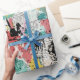 Colorful urban graffiti patchwork pattern wrapping paper featuring bold abstract blocks, expressive brush strokes, scribbles, stars, and mixed-media textures in bright blue, yellow, pink, orange, and black. Energetic and edgy with a modern street art aesthetic, this seamless design is ideal for graffiti art lovers, maximalist style fans, creative teens, and contemporary art enthusiasts.