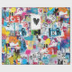Colorful urban graffiti patchwork pattern wrapping paper featuring bold abstract blocks, expressive brush strokes, scribbles, stars, and mixed-media textures in bright blue, yellow, pink, orange, and black. Energetic and edgy with a modern street art aesthetic, this seamless design is ideal for graffiti art lovers, maximalist style fans, creative teens, and contemporary art enthusiasts.