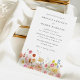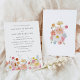Celebrate your love with this colorful watercolor wildflower wedding invitation, featuring a white background accented by a vibrant border of hand-painted wildflowers along the bottom edge. A mix of pink, blush, blue, yellow, and warm orange blooms is paired with delicate greenery and fluttering butterflies, creating a cheerful, romantic look inspired by spring and summer weddings. Elegant serif lettering presents the couple’s names and wedding details above the floral border, while the back of the invitation showcases a coordinating watercolor bouquet for a cohesive, beautifully finished design. Perfect for garden ceremonies, outdoor celebrations, and nature-inspired weddings.