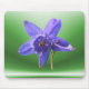 Purpurartiges blaues Columbine, ein Frühlingszeitliebling. Dargestellt über einem Designerhintergrund der grünen Wellen des Frühlinges der Farbe.