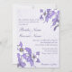Cette belle faire-part de mariage présente un délicat bouquet floral Columbine violet et blanc sur un arrière - plan de lavande qui donne une douce sensation romantique.