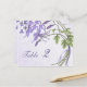 Diese hübsche Tischnummer-Karte mit individualisierbarer Nummer zeichnet sich durch ein zartes lila-weißes Kolumbus-Blumendesign aus, das ein sanftes romantisches Ambiente verleiht.