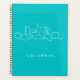 Cette conception présente une illustration dessinée à la main de l'horizon de Columbus, Ohio, sur un arrière - plan bleu.