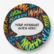 Ein lustiges, cooles und modernes Comic Buch Pop kunstinspiriert Papierteller kann mit Ihrer eigenen Botschaft personalisiert werden. Ideal für Hochzeiten, Brautpartys, Babyduschen, Taufe, Verlobungsfeiern, Jubiläumsfeiern und Geburtstagsfeiern. Entwickelt von Thisisnotme©