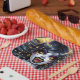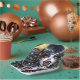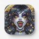 Teller aus Halloween-Party. Schwarz-Gold Vampir mit goldenen Reißzähnen und Augen Comic Buch Pop Kunst ai Art. Cool für Halloween oder alle, die Lieben Vampire..