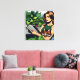 Comic Buchstil Frau, Katze und Buch Leinwanddruck