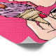 Ein Retro-Poster-Stil Illustration einer Frau mit lila Haaren lecken ein Eis. Die Frau hat lila Haare und isst ein lila Eis.