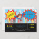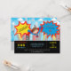 Appelle Tous Les Superhéros ! Prenez votre masque et votre cape, et préparez-vous à célébrer! Cette invitation à la fête d'anniversaire de super-héros coloré présente un arrière - plan de ville de style comique avec des bulles de texte personnalisées avec le nom et l'âge de votre enfant. Les détails de la fête sont ci-dessous sur un arrière - plan noir. Le dos présente un arrière - plan de ville comique. Facile à personnaliser avec des options personnalisées. Utilisez le bouton "Customiser" pour customiser le produit ou ajouter du texte. Recherchez les articles correspondants dans notre magasin!
