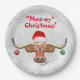Mit diesen einzigartigen "One of a Kind" Comical Longhorn Steer Party Tellern können Sie Ihren Weihnachtstisch aufpeppen! Dieser Comical Longhorn Steer trägt einen Weihnachtshut und Ornamente und wünscht dir ein ..."Moo~ey Christmas!