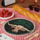 Brighten Sie Ihren Weihnachtstisch mit diesen "One of a Kind" Party-Tellern! Dieser komische Longhorn Steer wünscht euch ein "Moo~ey Christmas Y'all"! Original Fine Art von Künstler Kerry Miller.