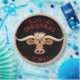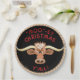 Brighten Sie Ihren Weihnachtstisch mit diesen "One of a Kind" Party-Tellern! Dieser komische Longhorn Steer wünscht euch ein "Moo~ey Christmas Y'all"! Original Fine Art von Künstler Kerry Miller.
