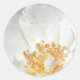 Détail d'un rose sauvage blanc sur autocollant rond.