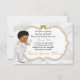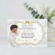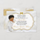 Schöner Baby Junge in weißem Anzug und goldene Kreuzung Bibel. Der einladende Hintergrund ist weißes Satin mit goldfarbenem und silberfarbenem Glitzer und Bugverzierung. Die Rückseite ist mit goldenem Blume-Muster und Goldband auf weißem Satin-Hintergrund geschmückt.
