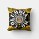 Kissenschwarz und goldgelb mit Hundeschritt-Design auf der Vorderseite und schwarz, weiß und goldfarbene konzentrische Kreise Design und "COLUMBIA, MISSOURI CENTER OF THE UNIVERSE" und das Große Siegel von Missouri in der Mitte und "GO TIGERS!!! Columbia, MO" rechts im Skript mit Y-NOT-ME. Dieses Design ist ein Ausruf nach Columbia, Missouri, einer großartigen Universitätsstadt.