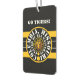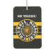 Car Air Freshener schwarz-weiß mit schwarz, weiß und gold konzentrischen Kreisen Design mit "COLUMBIA, MISSOURI CENTER OF THE UNIVERSE" mit "GO AHEAD YOU CAN DO IT" über schwarz, weiß und gold horizontalen Linien, mit Y-NOT-ME Logo in der Mitte und mit MIZZOU auf der Rückseite.