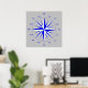 Poster mit dem Bild einer Kompass-Rose in Blau und Weiß vor einem grauen Hintergrund.