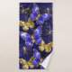 Composition de luxueux papillons saphir et bijoux en or sur arrière - plan à texture bleue.