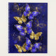 Composition des luxueux papillons saphir et bijoux en or sur arrière - plan bleu texturé.
