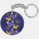 Composition des luxueux papillons saphir et bijoux en or sur arrière - plan bleu texturé.