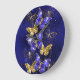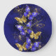 Composition of luxurious sapphire and gold jewelry butterflies on blue textured background.