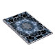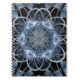 Computer fractal illustration of gray blue winter snowflake pattern on black background