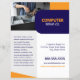 Stand out with this Computer Repairs, New Builds & Maintenance Flyer Template — a bold and modern design in navy blue and orange that instantly grabs attention. Perfect for tech professionals and repair shops, this customizable flyer lets you easily showcase your list of services, contact information, and a short company write-up to tell customers what makes you unique. Add your email and website for quick connections and keep your business looking sharp and professional. Whether you specialize in computer repairs, custom PC builds, or system maintenance, this flyer template helps you promote your services with style and confidence.
