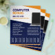 (Note: Tear-offs do not come precut) Stand out with this Computer Repairs, New Builds & Maintenance Flyer Template — a bold, modern design in navy blue and orange that instantly grabs attention. Perfect for tech professionals and repair shops, this customizable flyer showcases your services, contact details, and a short company write-up that highlights what makes you unique. Add your email and website for quick connections, and take advantage of the built-in tear-off tabs so customers can easily take your contact information home. Whether you specialize in computer repairs, custom PC builds, or system maintenance, this flyer helps you promote your services with style and confidence.