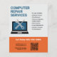 Ein professioneller Flyer für Computerservice mit einem sauberen Layout, das einen Hauch von Orange enthält und eine Liste von Dienstleistungen sowie einen QR-Code enthält! Das Design zeigt eine Illustration eines Laptops mit gekreuztem Schraubenschlüssel und Schraubendreher. Perfekt für Aktivitäten wie IT-Techniker, Hardware- und Softwaresupport, Upgrades, Wartung und mehr, entweder im Laden oder vor Ort.