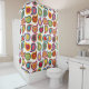 Dieser Duschvorhang ist in einem modernen Design aus Pisleys aus der Mitte des Jahrhunderts gehalten, die in Retrofarben übereinander angeordnet sind.
