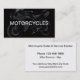 Un carte de visite cool à thème moto avec l'image d'un cycle cool à l'avant avec l'espace pour le mot Motocyclette ou votre nom d'entreprise et vos coordonnées et informations commerciales affichées à l'arrière.