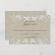 Inspiré des modèles vintage, réponse de mariage avec dentelle florale de campagne sur toile de jute avec couleur de texte marron. Personnalisez comme vous le souhaitez. Toutes les parties de cette invitation sont imprimées. Aucune véritable dentelle ni véritable toile de jute ne sont attachées.
