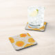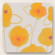 De grandes fleurs circulaires oranges avec une petite corolle rouge et de longues tiges et feuilles occupent presque toute la surface neutre de ce dessous de verre en plastique dur.