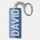 Faites votre choix de nom affiché en gras sur un porte-clés bicolore. L'exemple montre le nom David. Personnalisez avec votre choix de nom court.