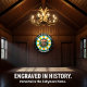 Une oeuvre circulaire audacieuse d'un grizzli dans la forêt, accentuée par une cible.