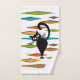 Illustration de style abstrait coloré du milieu du siècle avec chat noir et décoration de losange coloré sur arrière - plan blanc