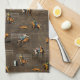 Serviette de cuisine occidentale imprimée d'un côté. L'arrière est blanc. L'avant inclut 5 conceptions différentes de rodéo sur un arrière - plan brun affligé