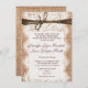 Utilisez ce modèle faire-part de mariage rustique pour concevoir vos propres invitations de mariage à la campagne. Ajoutez simplement les détails de votre mariage aux zones modèles. Le design est un design de burlap IMPRIMÉ avec dentelle et ficelle IMPRIMÉES. Il s'agit d'un invitation imprimé à plat, et non d'un tissu de burlap réel.