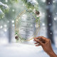 Für eine Winterhochzeit. Ein heller, transparenter Hintergrund mit Kegeln, weißen Beeren und grünem Wasser. Ein Imitat Goldrahmen. Personalisieren Sie Ihre Namen und Details und fügen Sie diese hinzu.